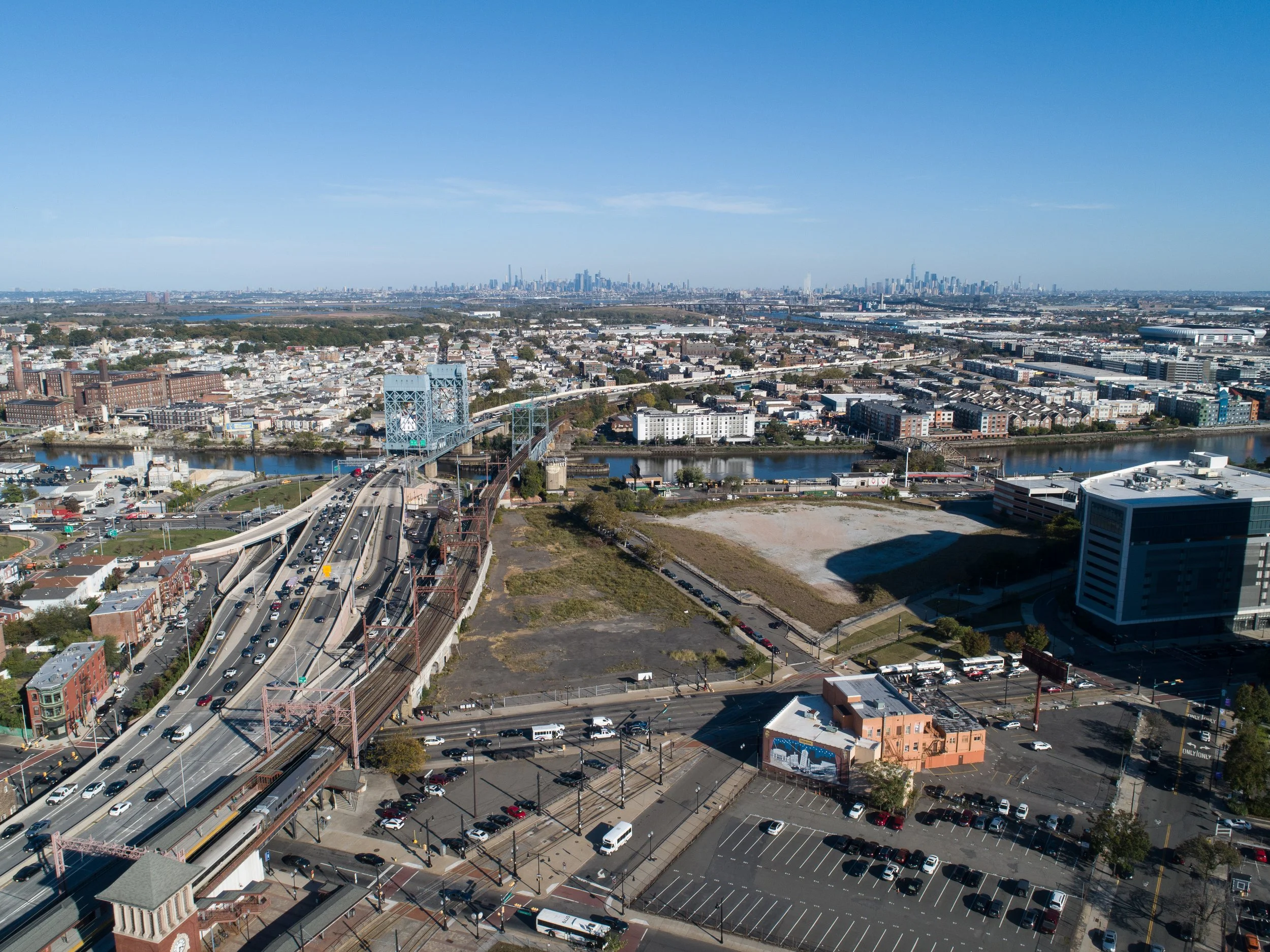 The pedestrian-focused planning draws on the proximity of multimodal transit options that are located within walking distance, namely, the Broad Street Station for commuter rail access to Manhattan in less than 30 minutes and the city’s light rail system with a light rail station on the northern boundary of the site, for intracity access.