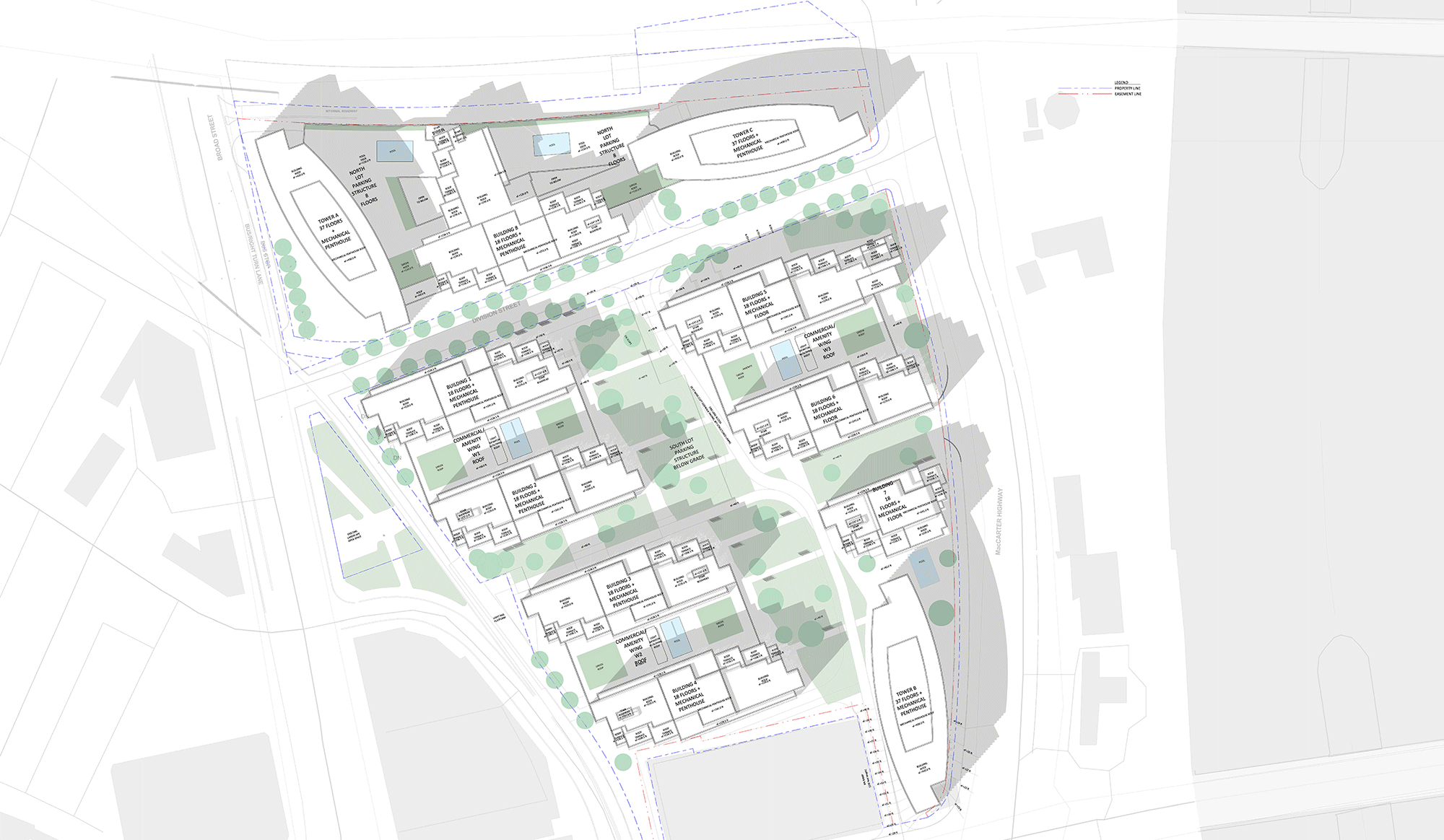 4,200 apartments and 100,000 square feet of commercial space, including shops and offices, are accommodated in eight new interlinked residential buildings and three freestanding towers.