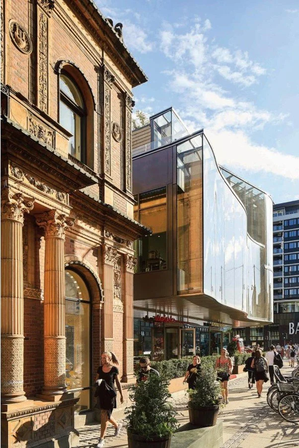 It is both a portal framing the fanciful world of Tivoli, and a mirror amplifying the vivid world of Copenhagen.